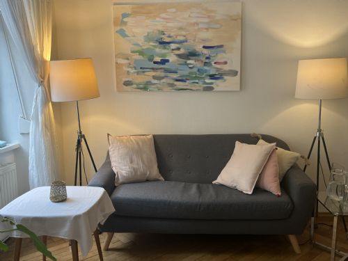 Bei der Gestaltung des Praxisraumes waren mir freundliche Farben und Gemütlichkeit wichtig. Ich bin überzeugt, dass das Wohlbefinden im Raum für die Therapie wichtig ist.