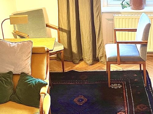Bei der Gestaltung des Praxisraumes waren mir freundliche Farben und Gemütlichkeit wichtig. Ich bin überzeugt, dass das Wohlbefinden im Raum für die Therapie wichtig ist.