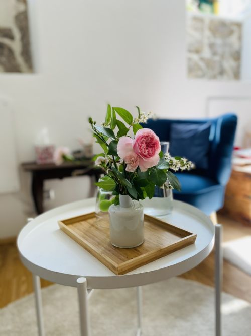 Praxisraum In meiner Praxis stehen zwei Räumlichkeiten zur Verfügung. In diesem finden die Gesprächssitzungen statt. Es gibt auch die Möglichkeit auf der Entspannungsliege Platz zu nehmen, falls einmal hohe Anspannung besteht oder Entspannungsübungen erarbeitet werden.