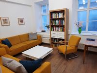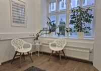 Im 30m2 großen Praxisraum gibt es ausreichend Platz für Psychotherapie im Sitzen, Gehen, für Bewegung und Kreativität.