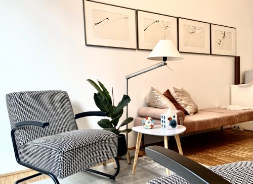 Der angenehm helle Praxisraum, ruhig im 3. Stock gelegen, angenehme Altbau-Höhe, hier lässt es sich gut und sicher mit Einzelpersonen, Paaren, kleineren Teams und Gruppen arbeiten.