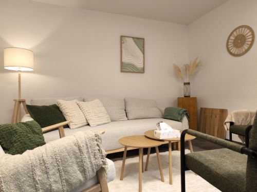 Der größere Raum: geeignet und ausgestattet auch für Gruppenarbeit (bis ca. 12 Personen) sowie für Kinder und Jugendtherapie.